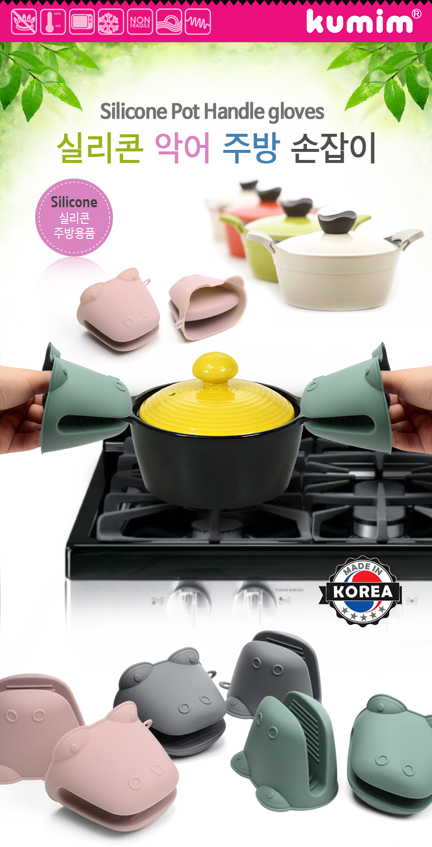 국산 실리콘 주방 악어 냄비 집게 손잡이 장갑 2P