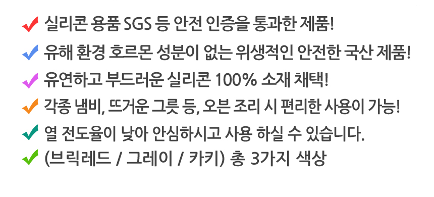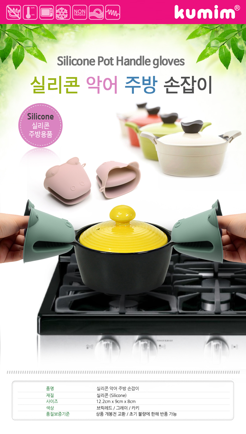 1. 품명 및 모델명 : 국산 실리콘 주방 냄비 집게 손잡이 장갑 2P