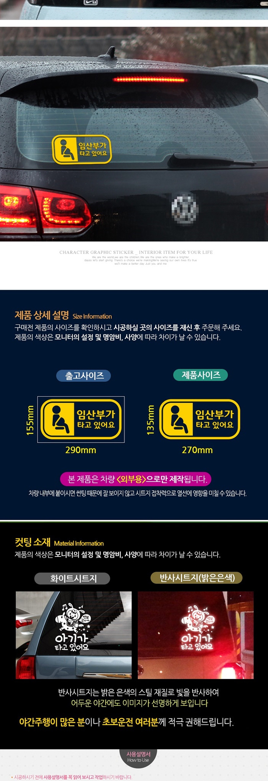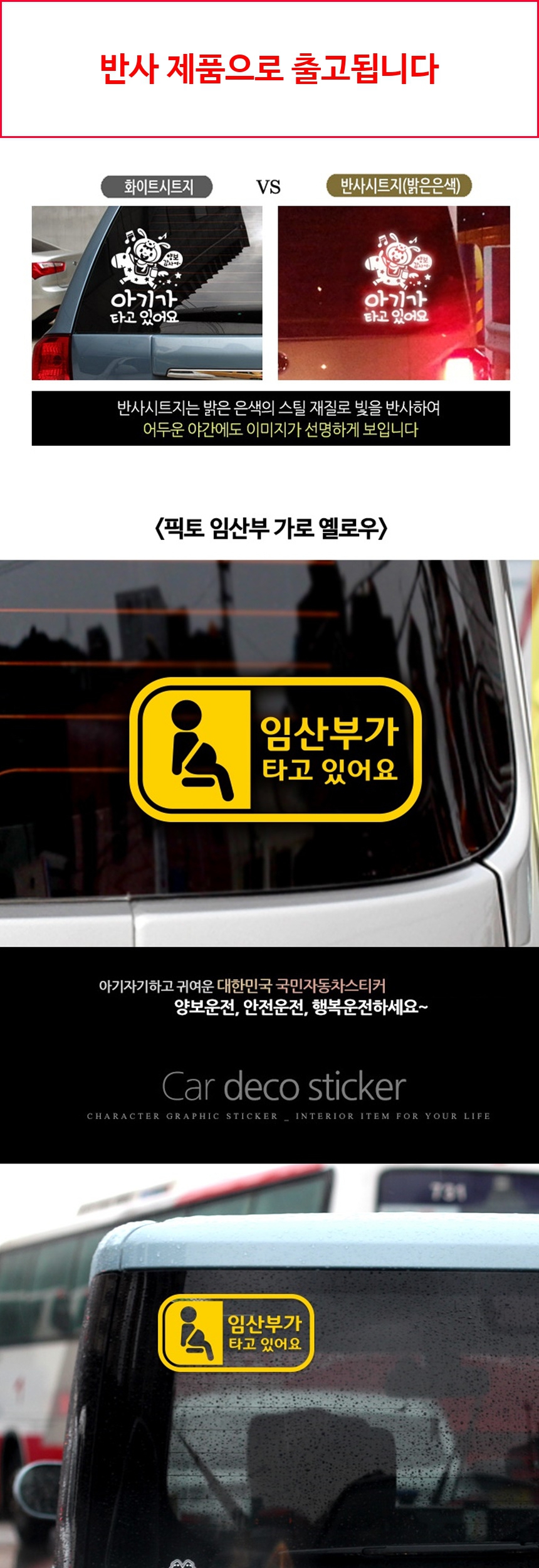 임산부가타고있어요 가로 자동차스티커 반사 이미지/