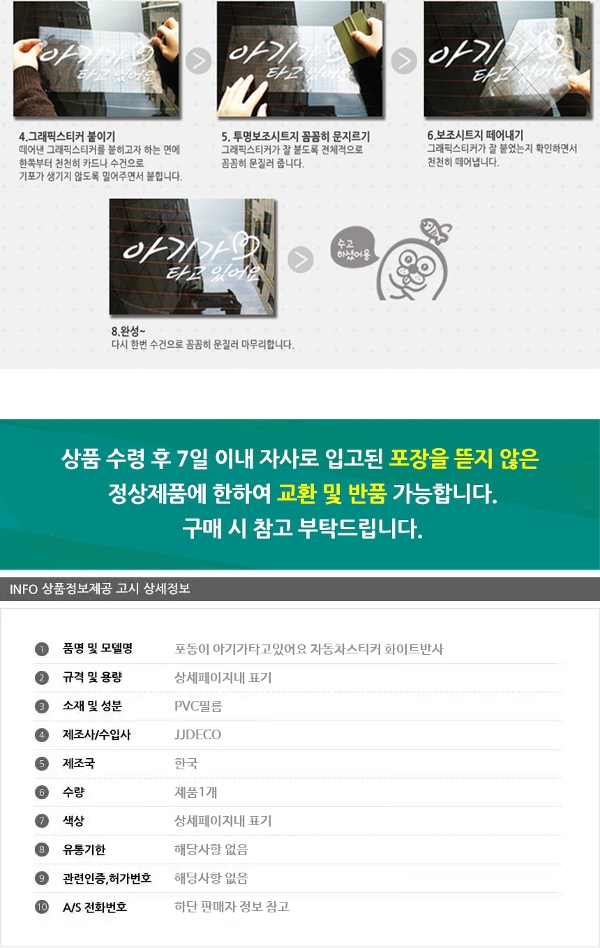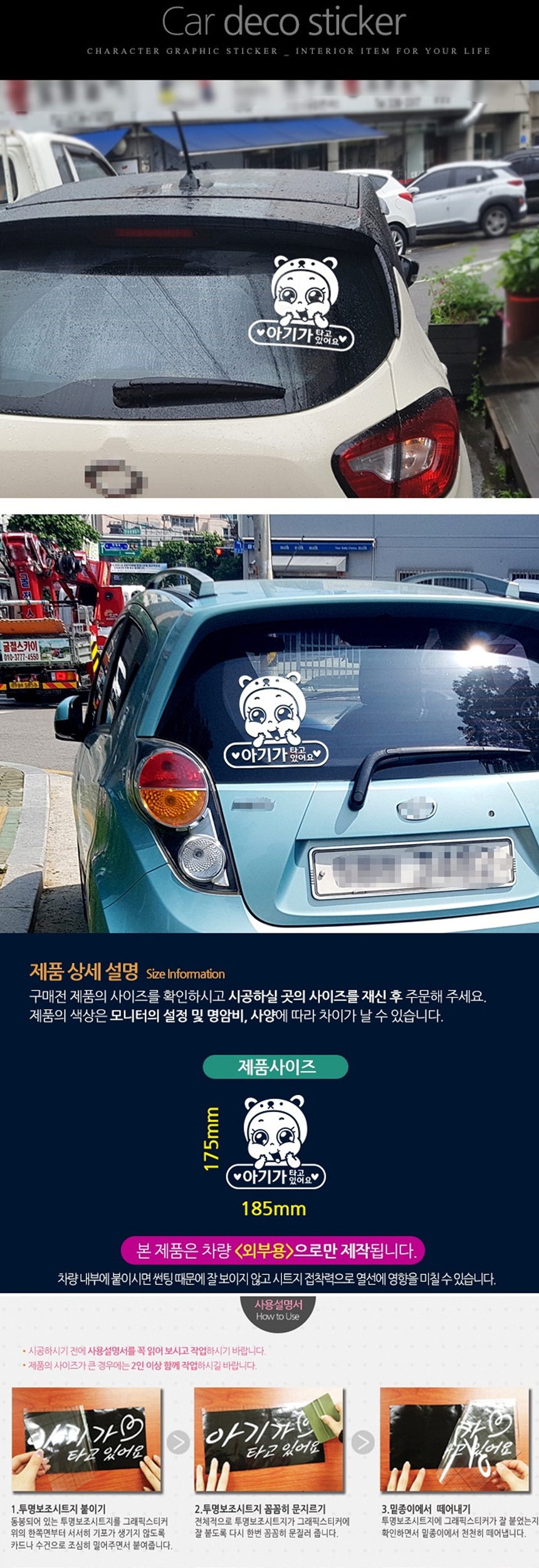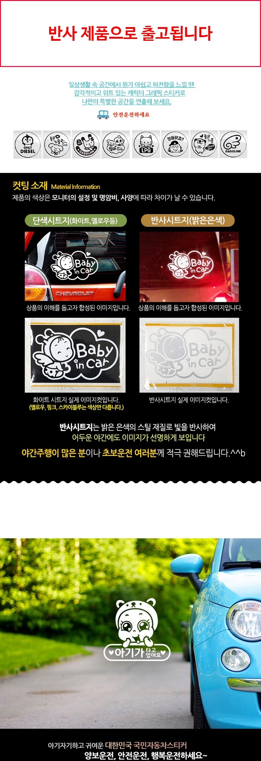 포동이 아기가타고있어요 자동차스티커 화이트반사 이미지/
