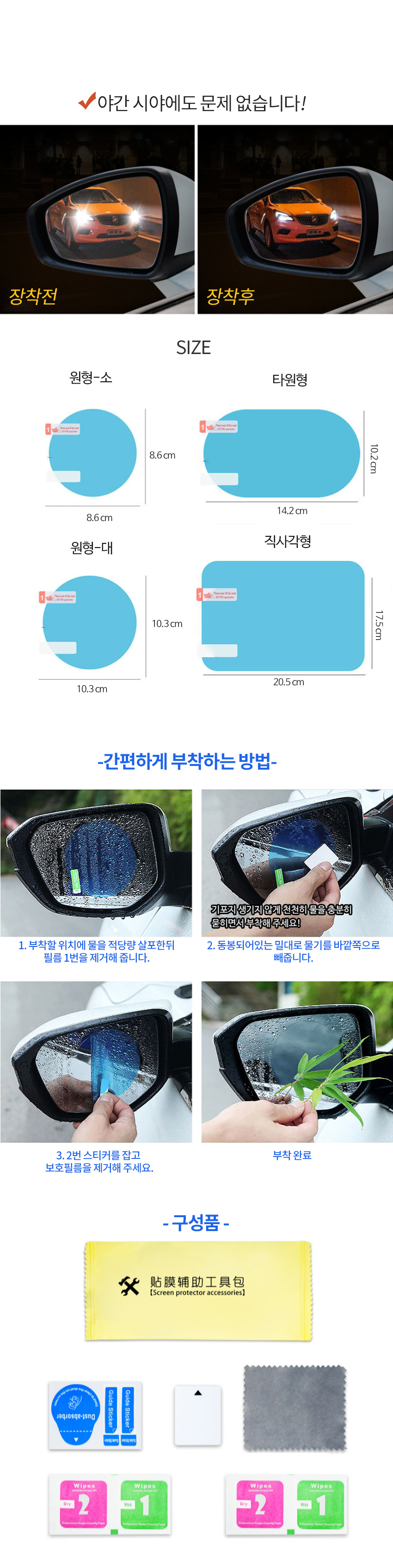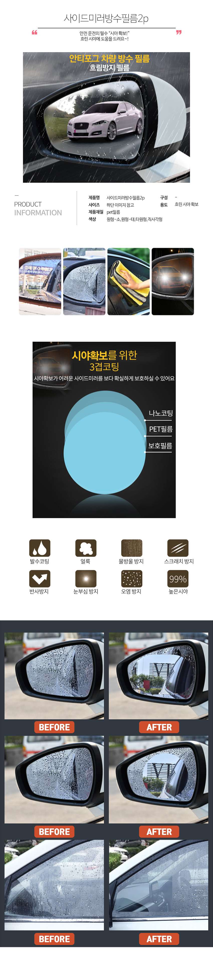 사이드미러방수필름2p 백미러방수필름 사이드미러코팅 백미러필름 사이드미러필름 자동차백미러방수