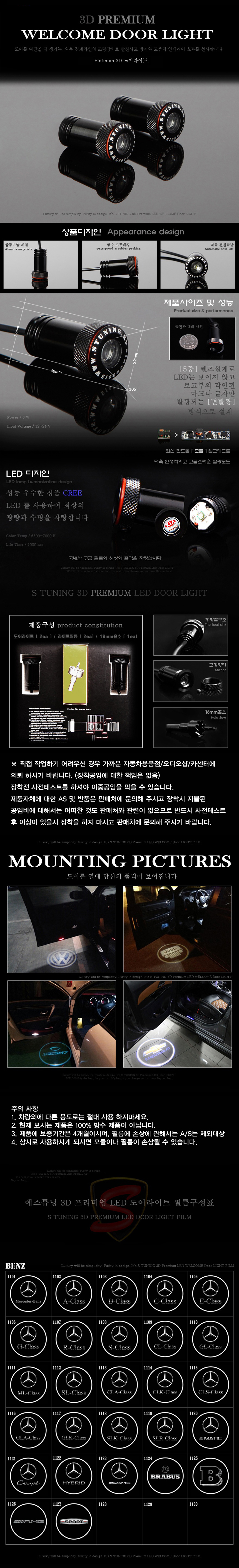 체인지업 벤츠 3D LED 도어 라이트빔 등 스팟램프
