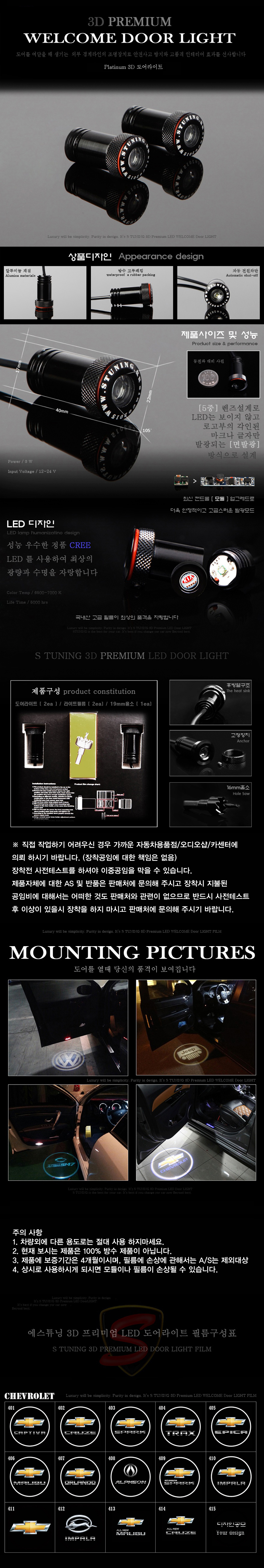 체인지업 쉐보레 3D LED 도어 라이트빔 등 스팟램프
