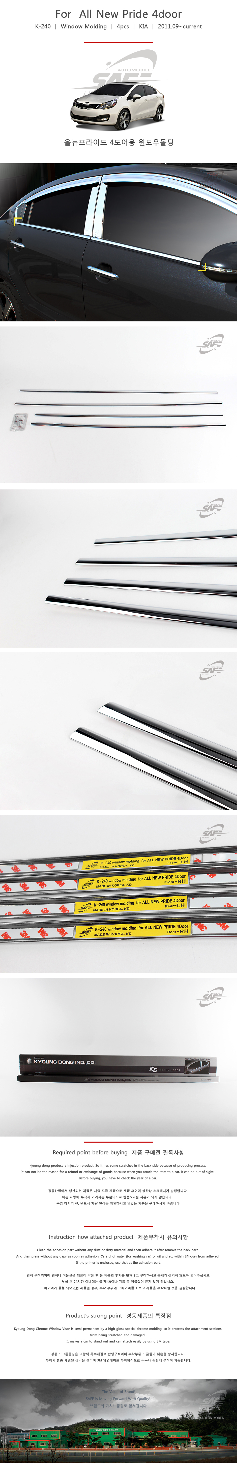 4도어 올뉴프라이드 윈도우몰딩 4pcs 자동차 창틀몰딩 이미지/