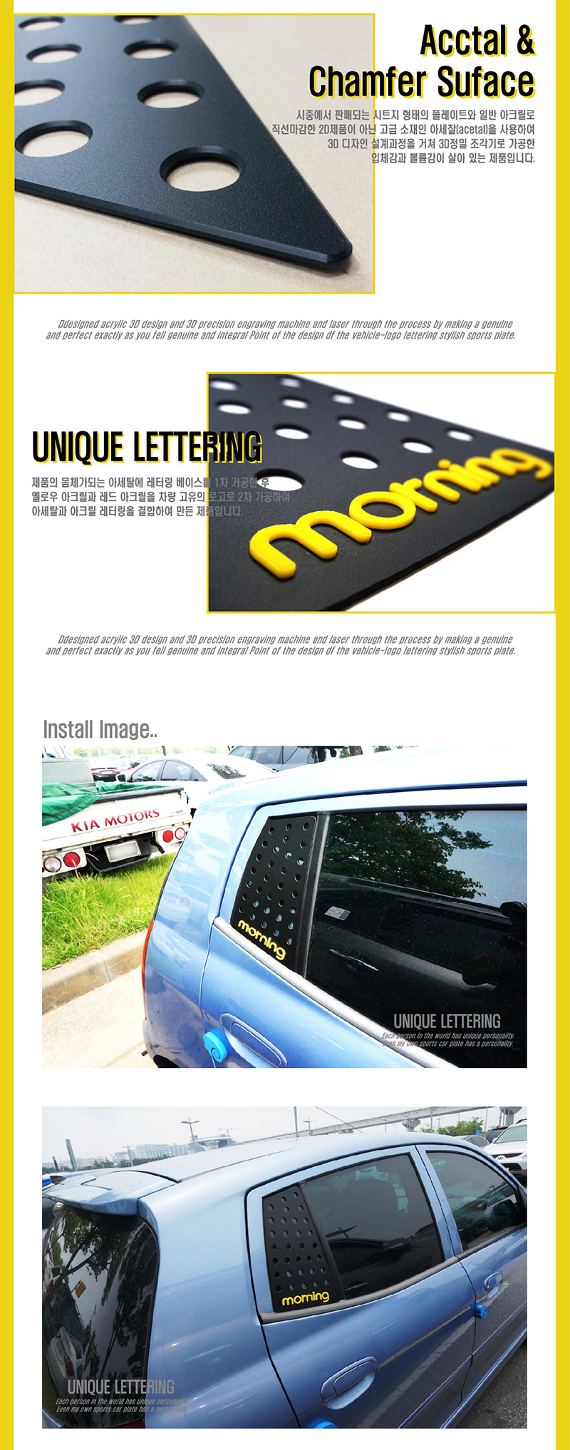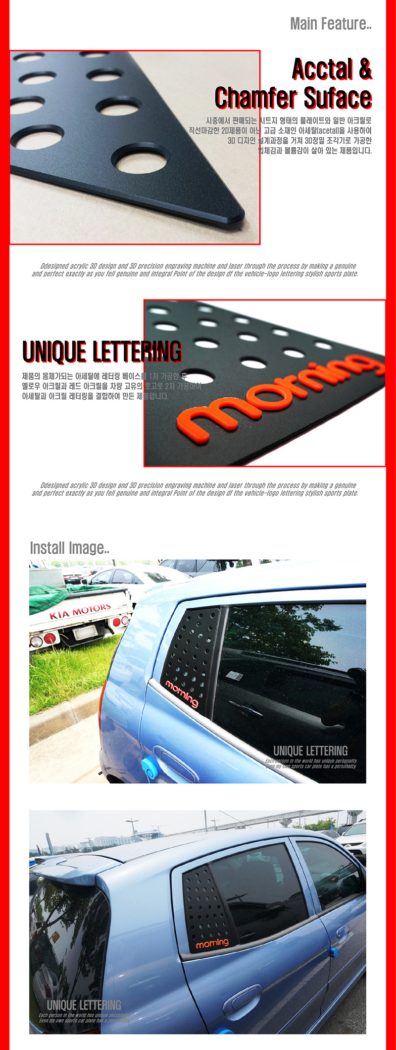 모닝 버전2 레터링 스포츠 플레이트 좌우 1set