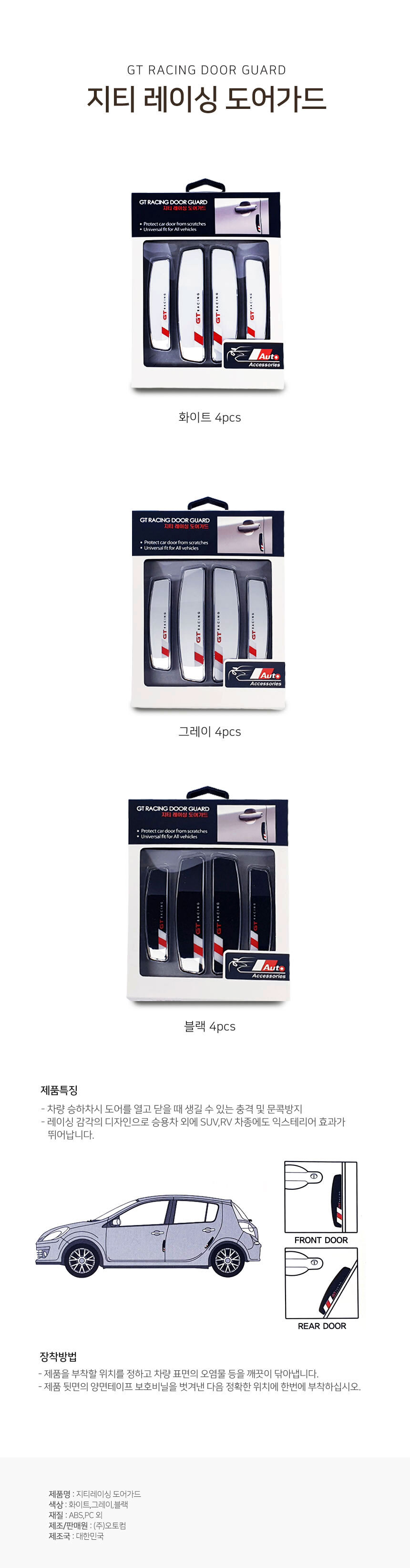오토컴 깔끔한 도어가드/ 민무늬 차량용 문콕방지 쿠션