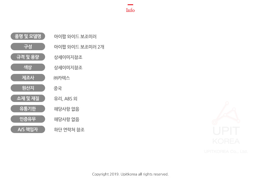 • 다른 제품과 같이 주문할 경우 따로 배송됨을 말씀드립니다.