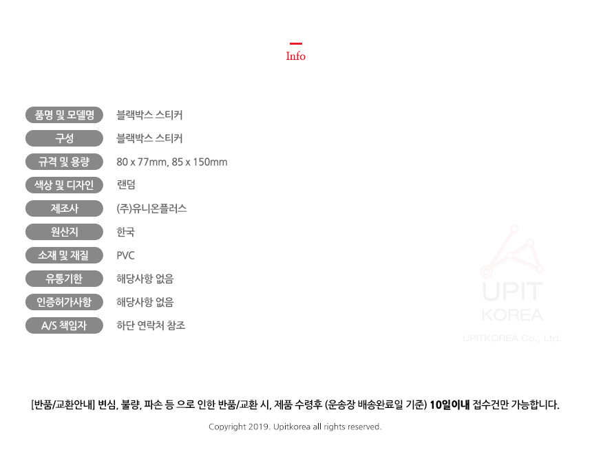 • 초기제품 이상의 경우 동일한 제품으로 1:1 교환원칙, 사용후 제품이상은 A/S를 원칙으로 합니다.