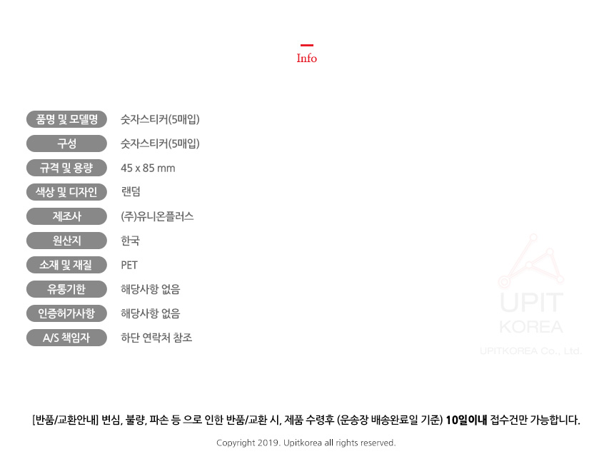 • 초기제품 이상의 경우 동일한 제품으로 1:1 교환원칙, 사용후 제품이상은 A/S를 원칙으로 합니다.