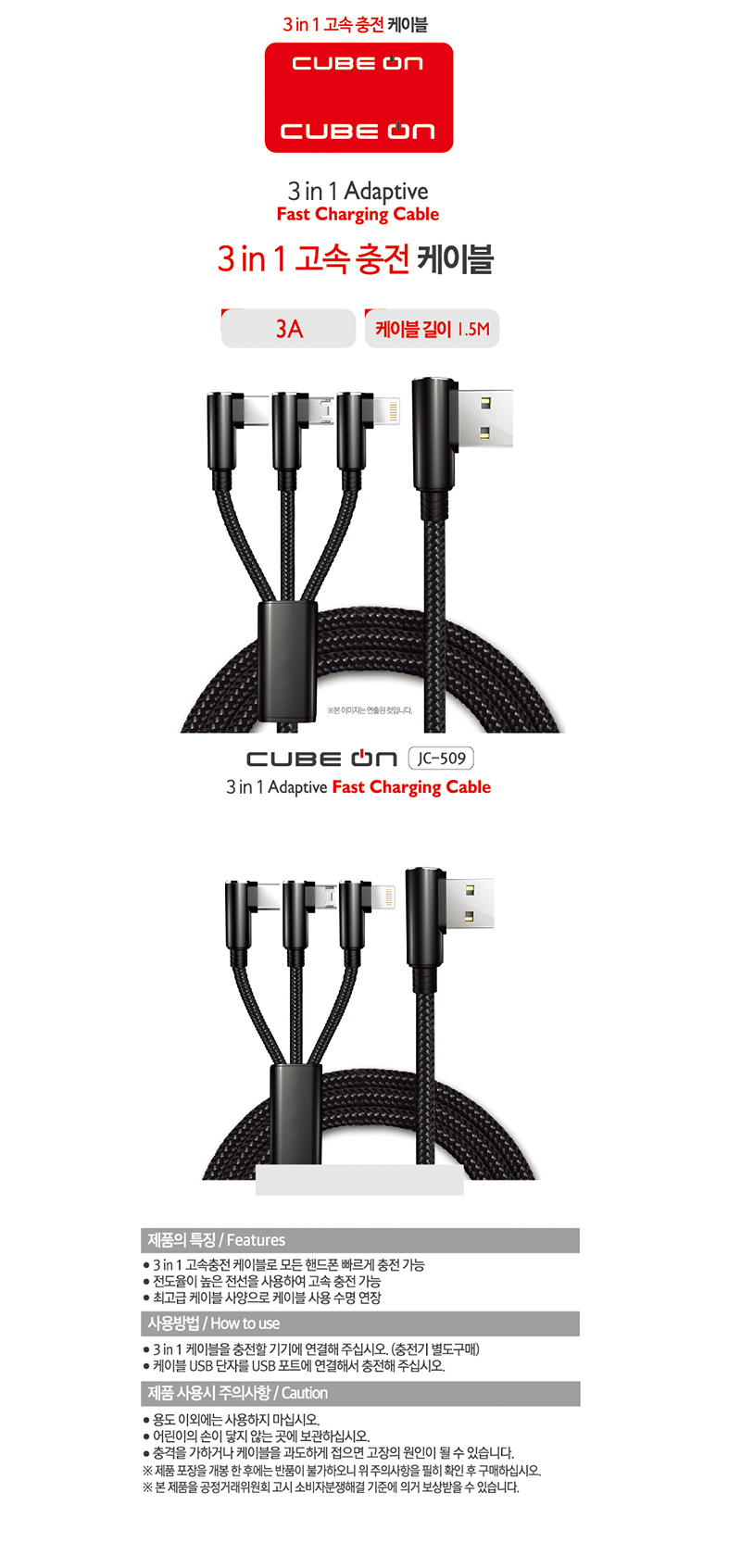 큐브온 C타입9V 초고속충전케이블 JI-509C자동차용품충전케이블핸드폰충전케이블급속충전케이