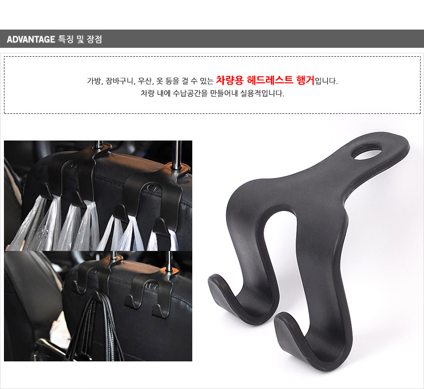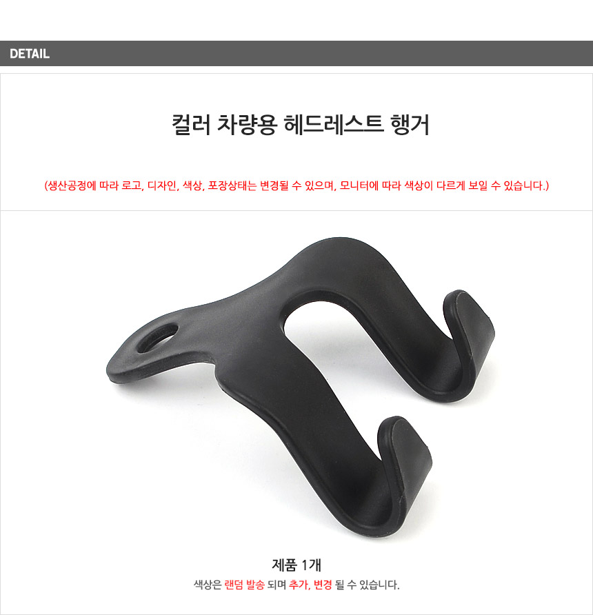 컬러 차량용 헤드레스트 행거 색상랜덤 가방걸이소품 이미지/