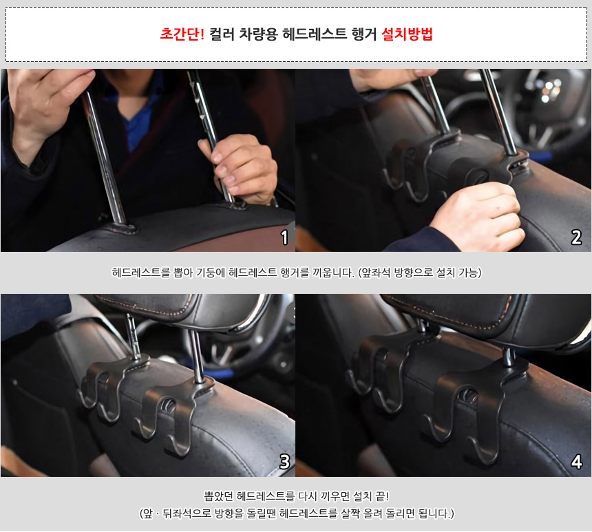 컬러 차량용 헤드레스트 행거 색상랜덤 가방걸이소품