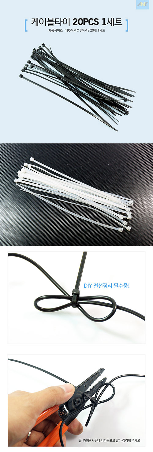 DIY용 전선정리 케이블타이 20개 1세트 화이트 20개 1세트