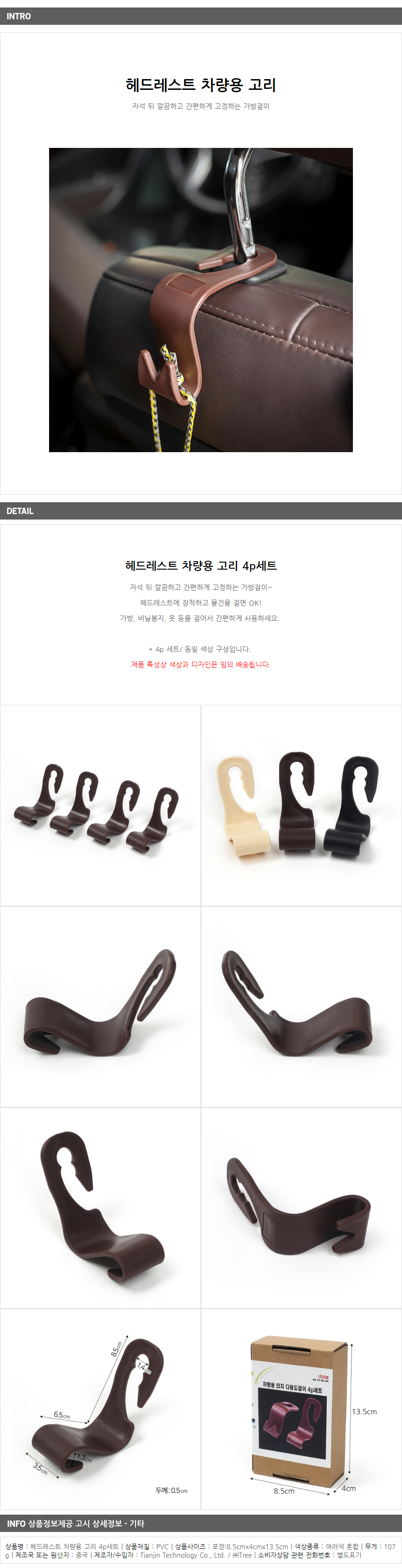 차량 자동차 수납 후크고리 4p세트 이미지/