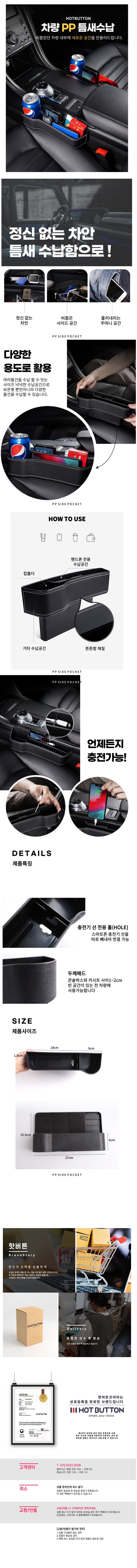 핫버튼 자동차 틈새 포켓 홀더 컵홀더 차량 수납 사이드포켓