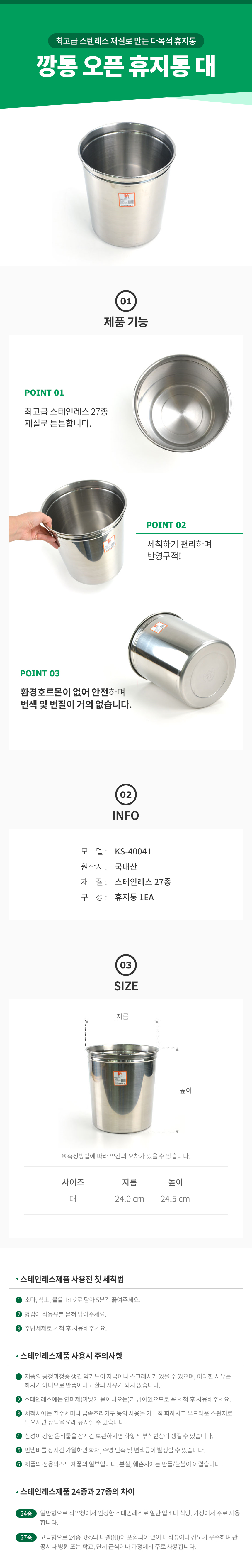 깡통 오픈 휴지통 대형 업소용 스텐 다목적 쓰레기통