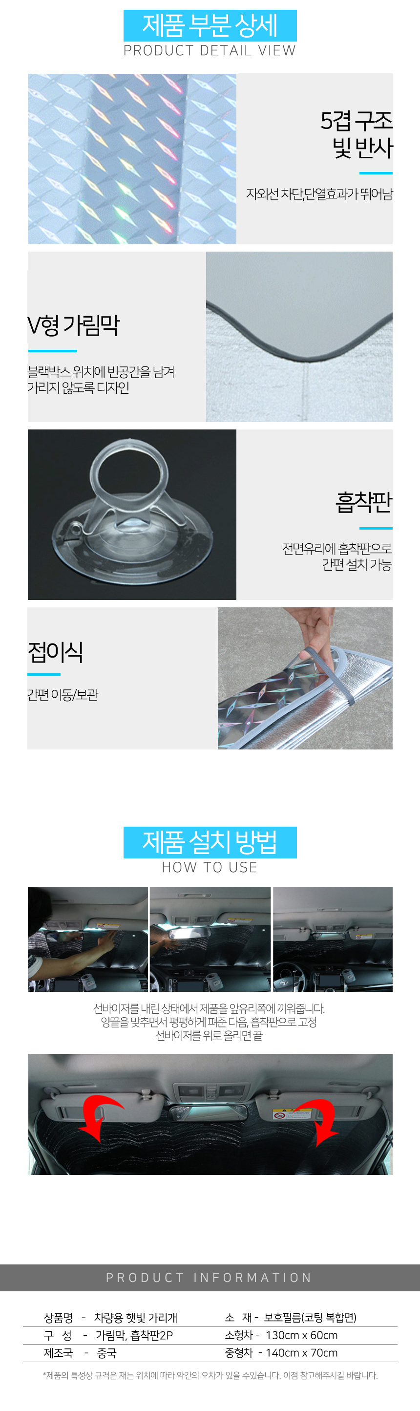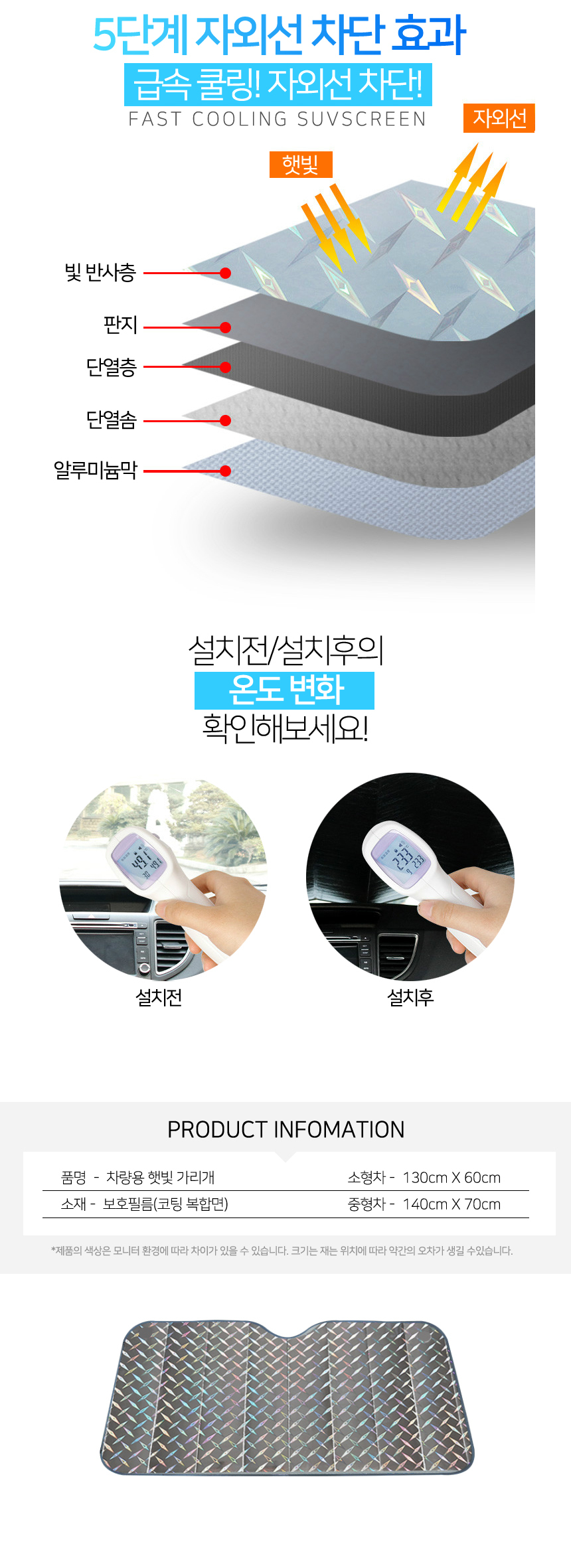 승용차 햇빛가리개 주차 앞유리 햇볕 차단 140x70 이미지/