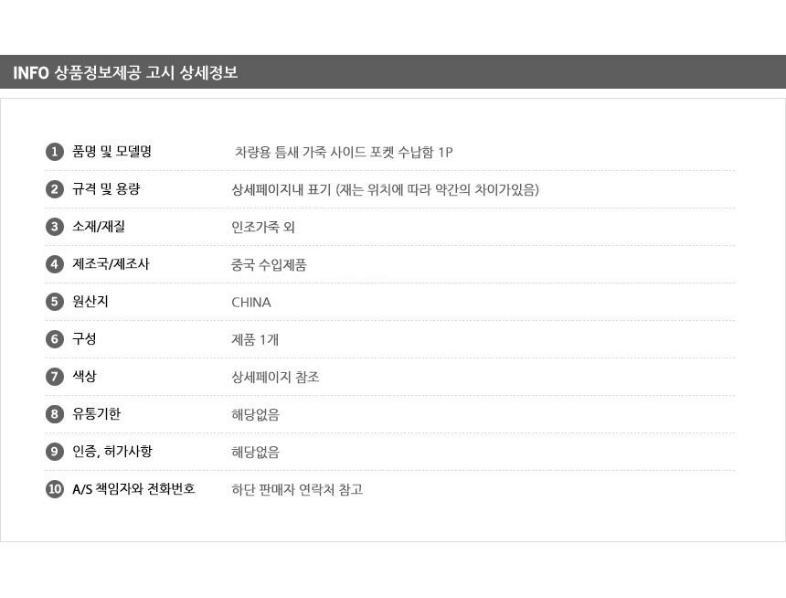차량용 틈새 가죽 사이드 포켓 수납함 1P 사이드포켓
