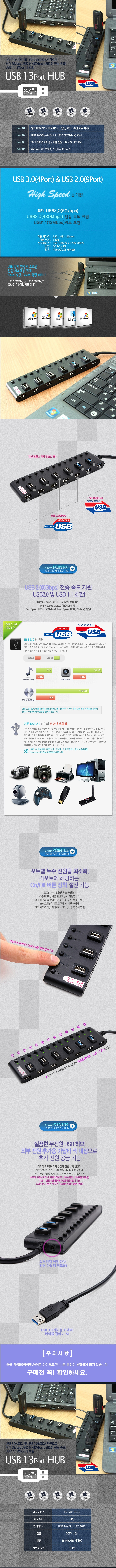 멀티 USB 13포트 무전원 허브/USB3.0 4포트2.0 9포트/개별 전원 스위치