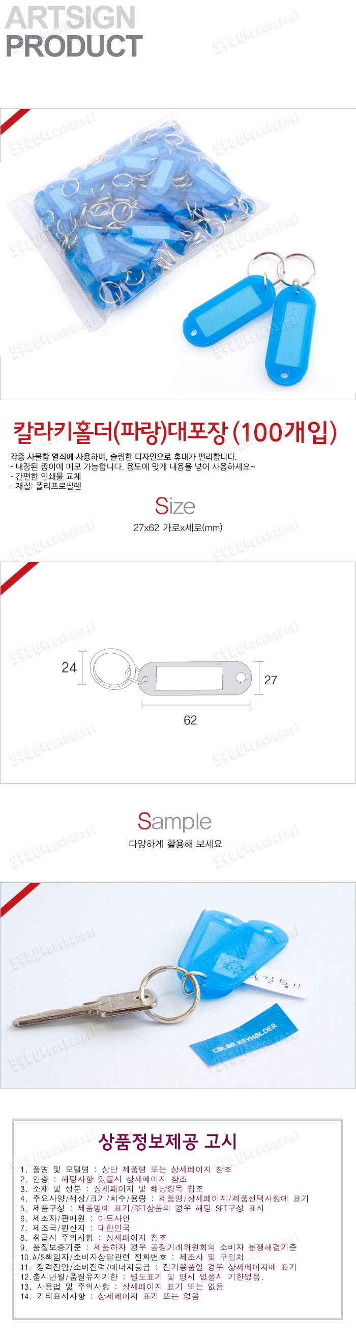 • 품명 및 모델명칼라키홀더(파랑100개입)