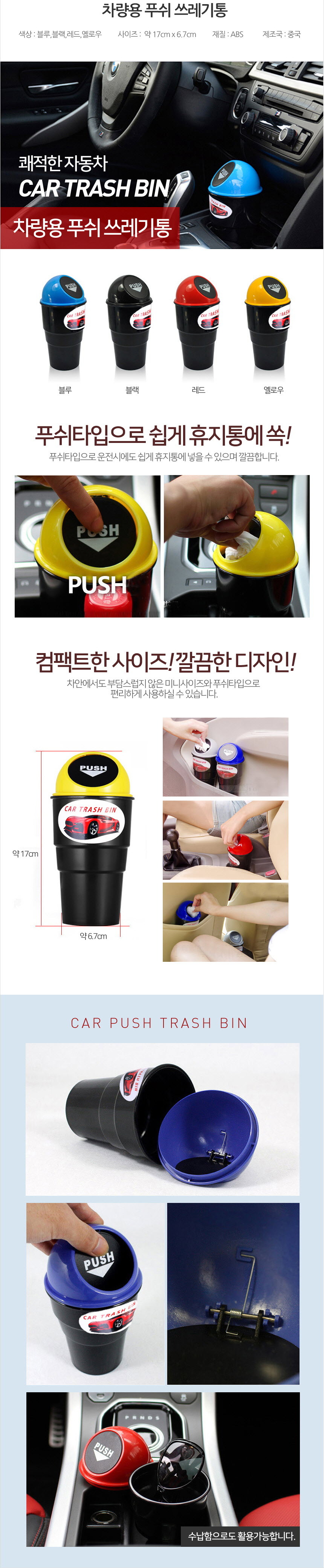 차량 컵홀더 사이드 포켓 관리 청소 미니 휴지통 자동차휴지통 자동차쓰레기