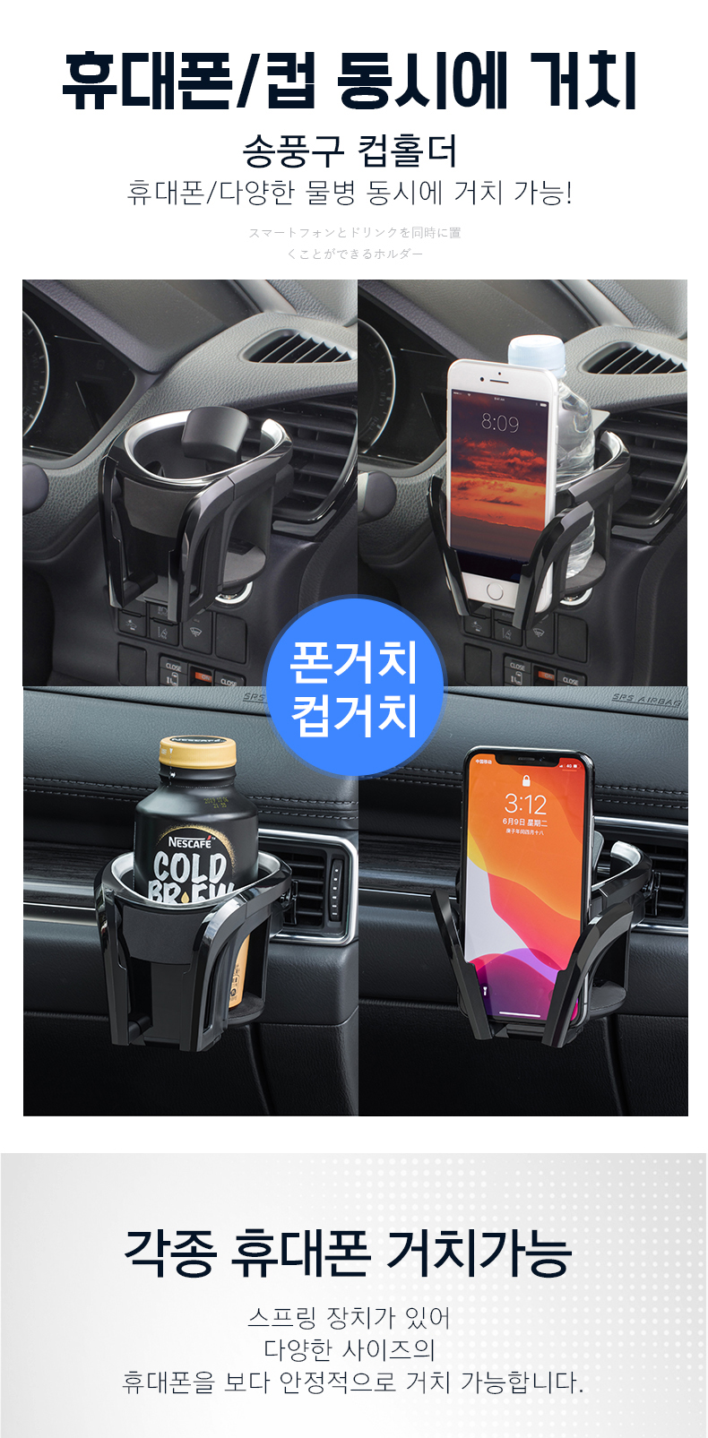 YAC-휴대폰/컵 동시거치 컵홀더 PF356/PF357