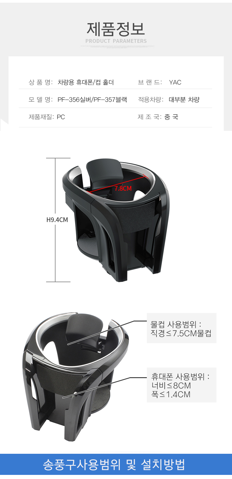 YAC-휴대폰/컵 동시거치 컵홀더 PF356/PF357 이미지/