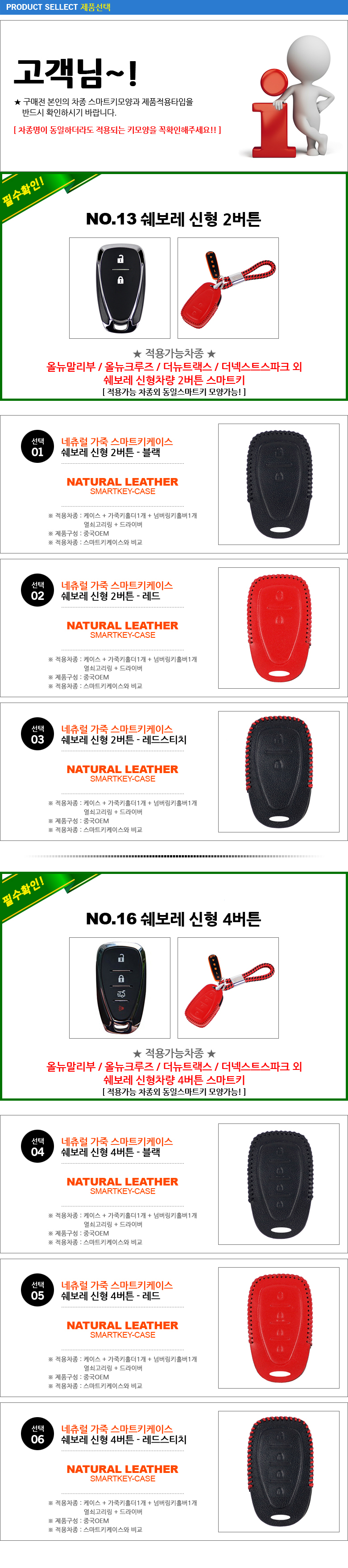WEMOB 쉐보레 신형 전용 가죽 스마트 키홀더 차키케이스