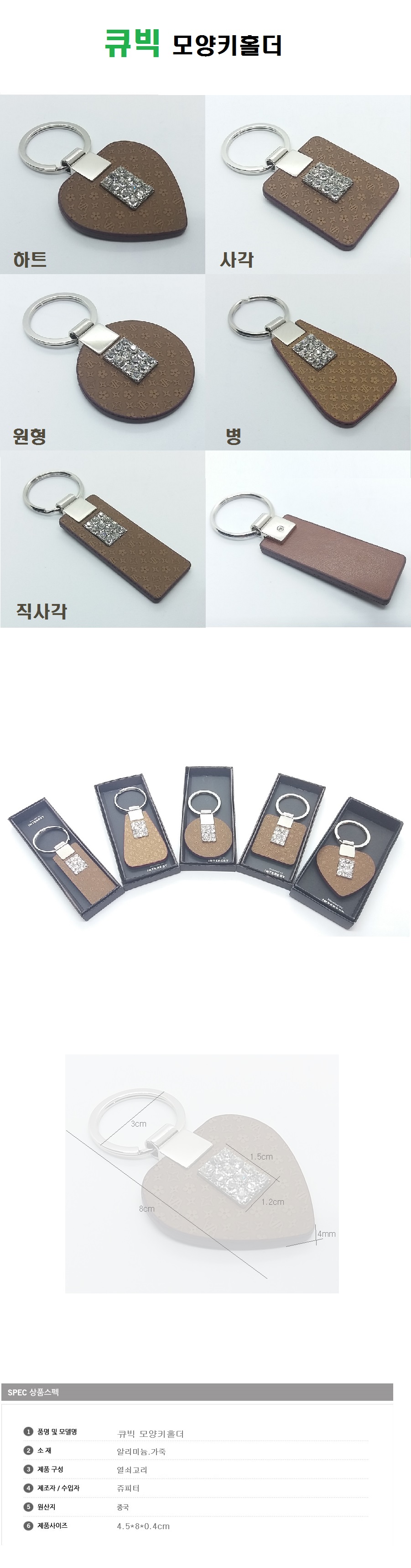 <상품명 : 큐빅모양 키홀더 가죽열쇠고리>