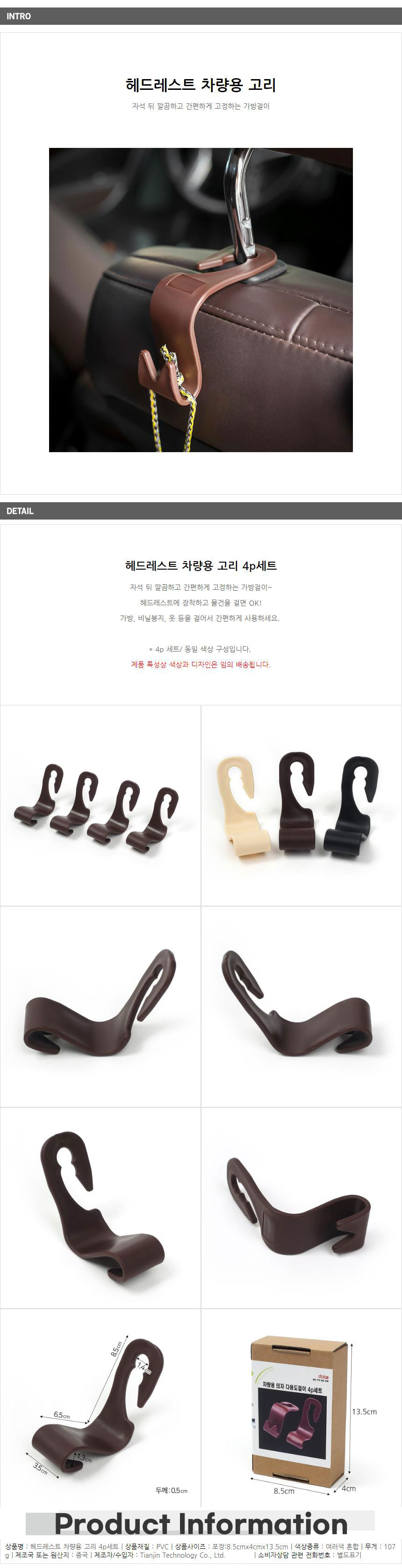 편리한 자동차 뒷자석고리 4P-색상랜덤 의자후크 이미지/