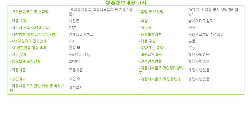 차량용 망사 햇빛가리개 2P 자외선차단