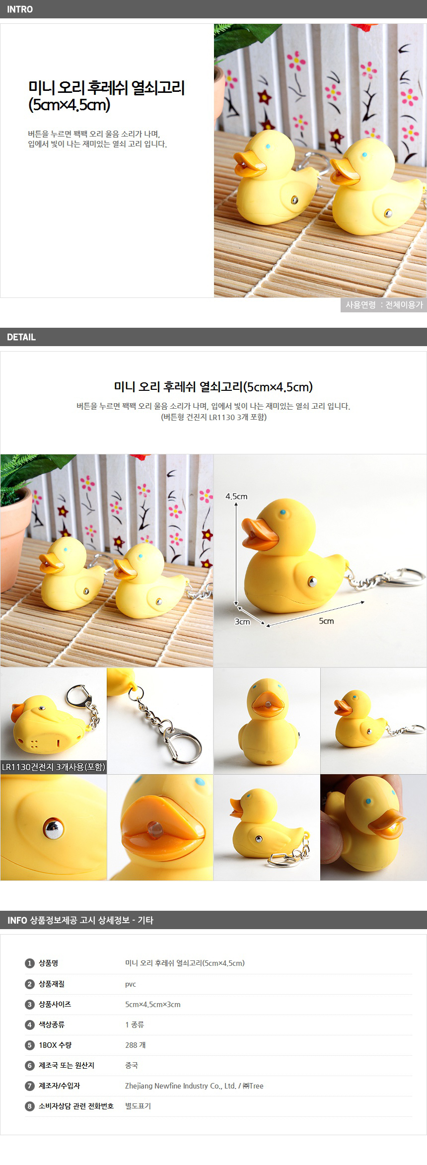 미니 오리 후레쉬 열쇠고리(5x4.5cm)