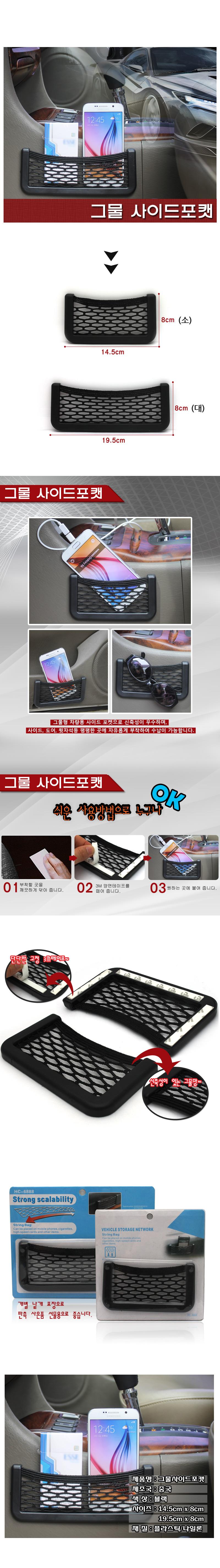<상품명 : 차량용 부착 그물 사이드포켓 대 자동차수납공간>
