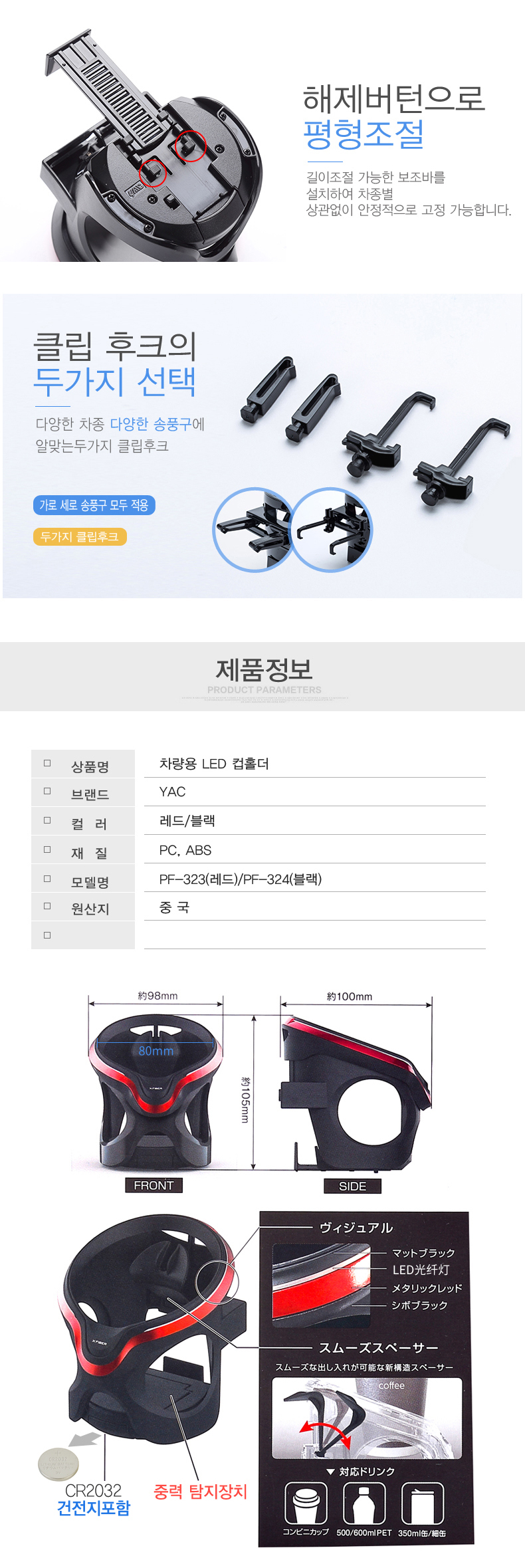 YAC-중력감지 차량용 LED 컵홀더 이미지/