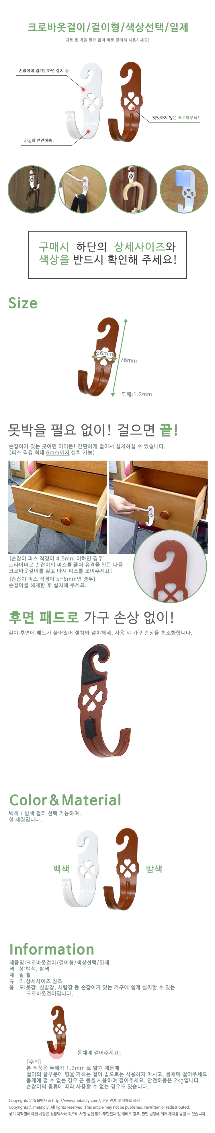크로바옷걸이 걸이형 밤색 AP-12 일제 벽고정걸이 후 이미지/