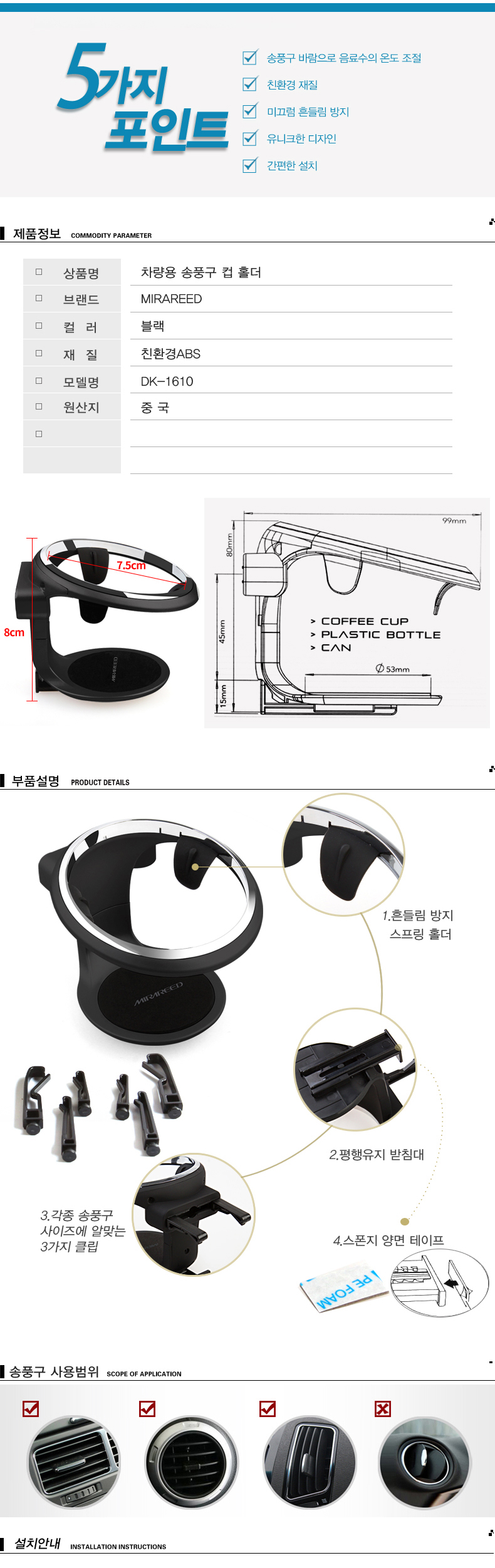 MIRAREED-차량용 송풍구 컵 홀더 DK-1610 이미지/