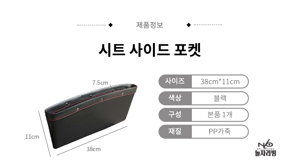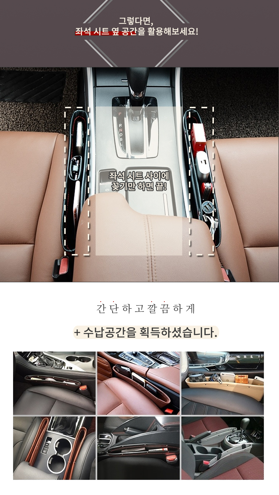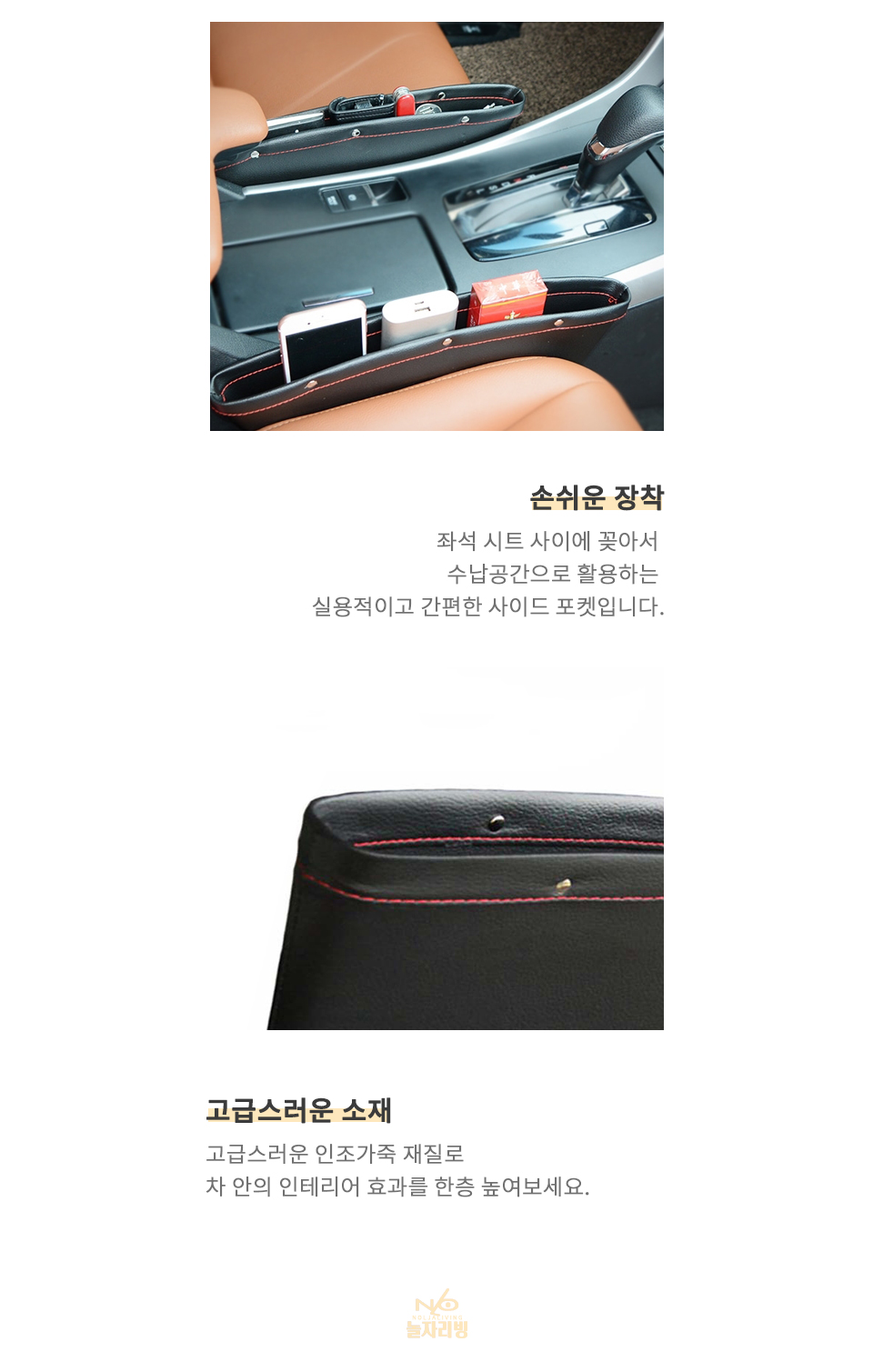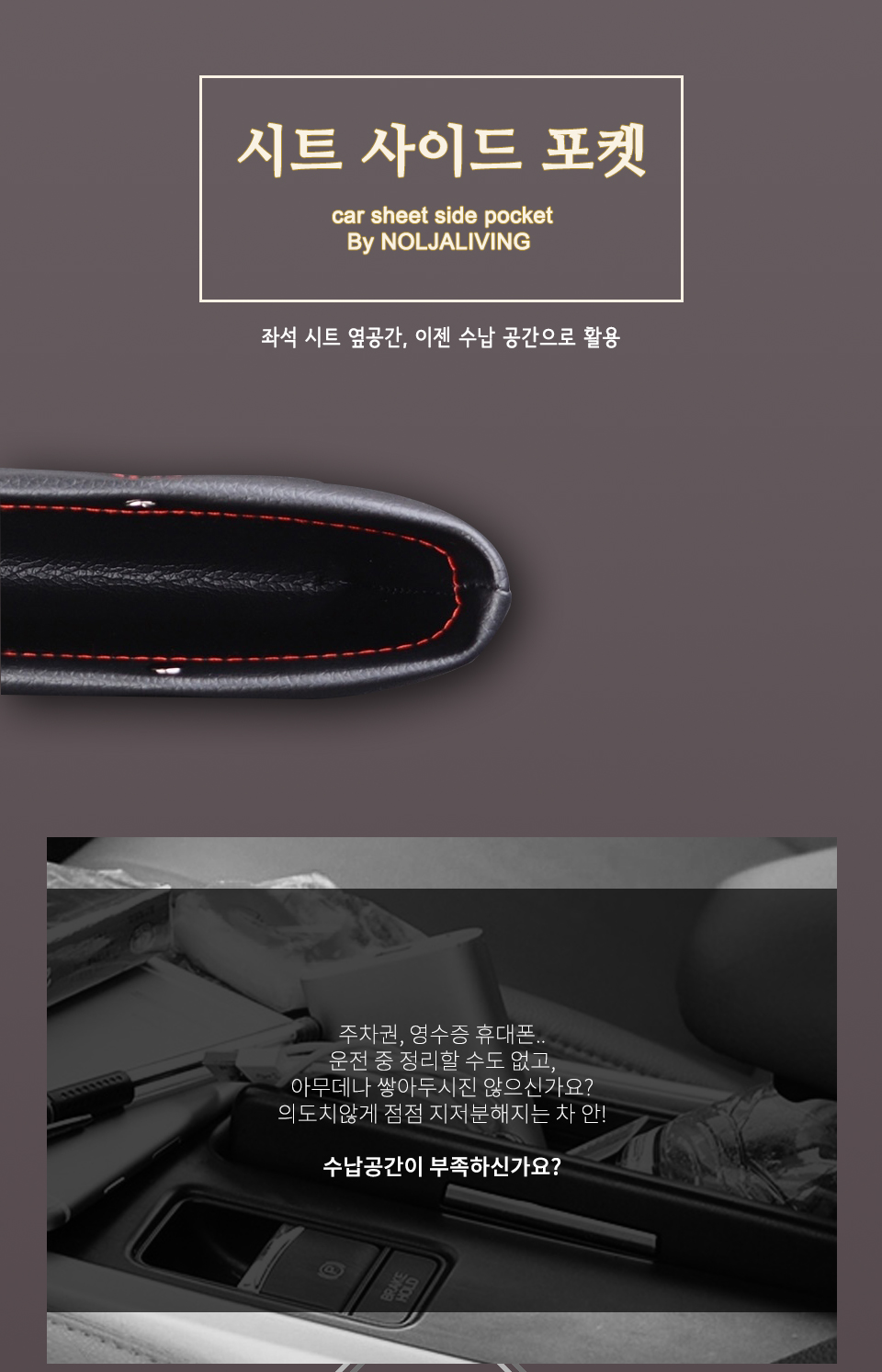 히든템 차량용 시트 사이드포켓 가죽 틈새포켓 틈새커버포켓 스토리지포켓 이미지/