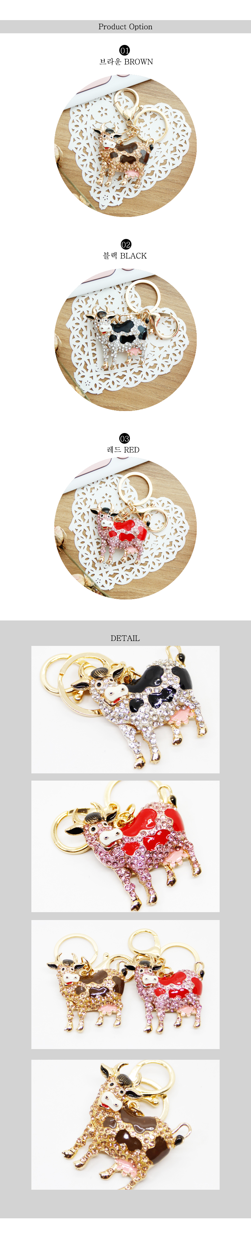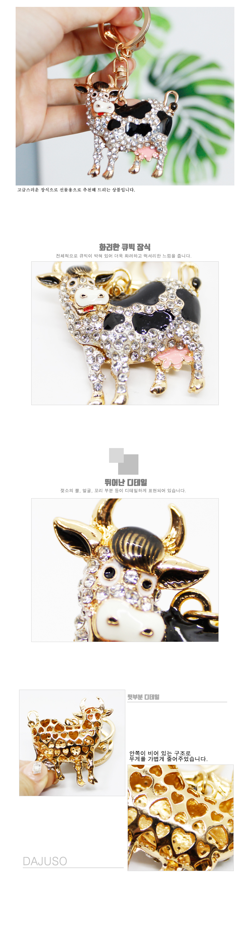화려한 스톤으로 장식한 예쁜 젖소모양 키링