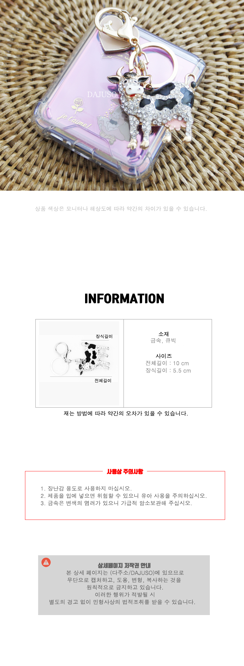 <상품명 : 큐빅 장식 삼색 젖소 모양 키링(3colors)>