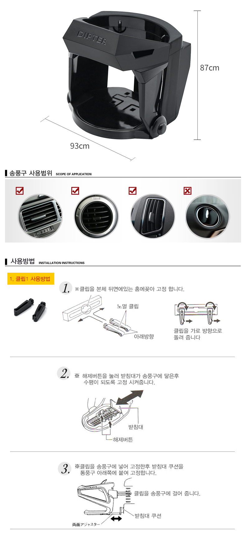 YAC-차량용 스포츠 송풍구 컵 홀더 PF-334 이미지/