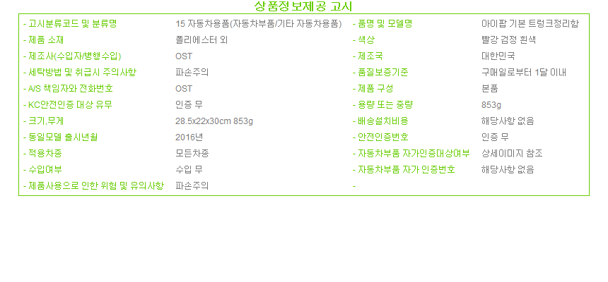 아이팝 기본 트렁크정리함 수납 보관함 이미지/