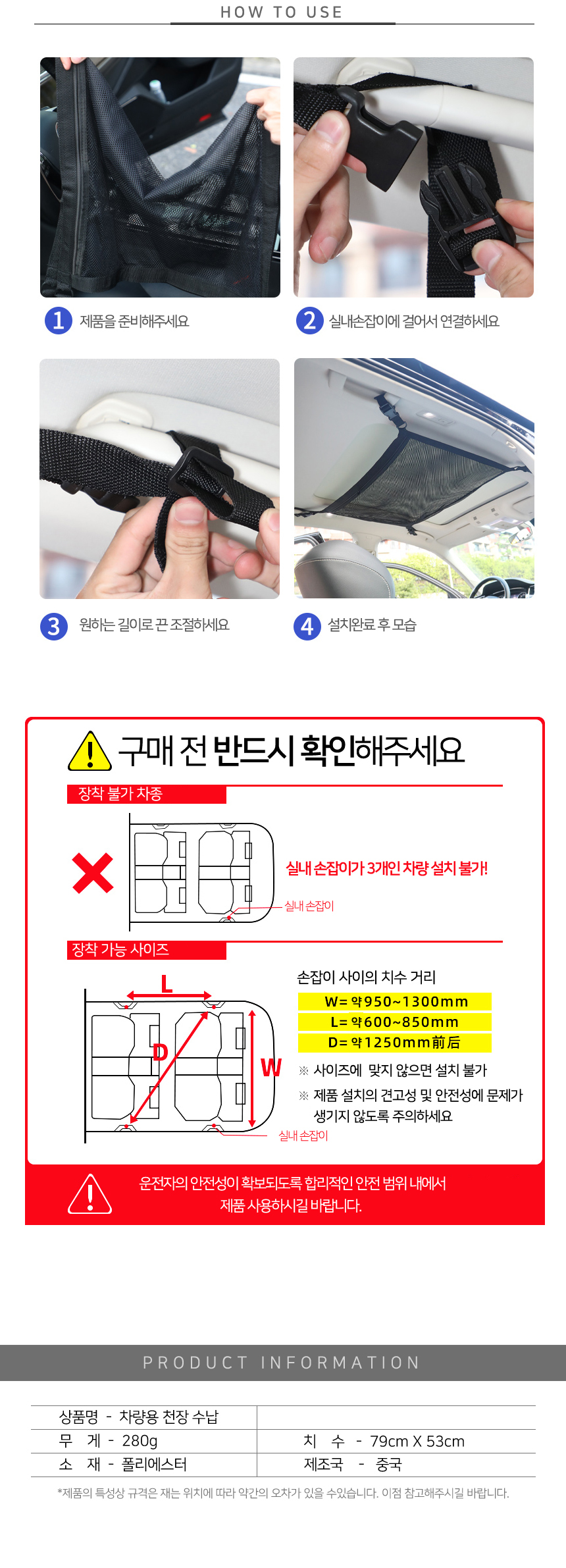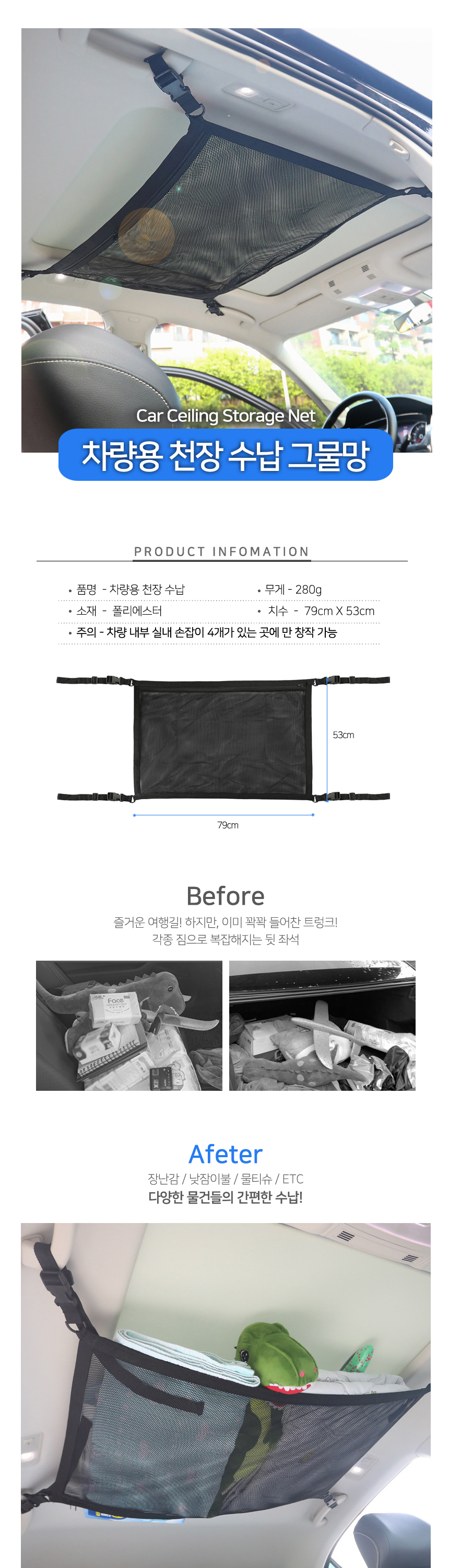 차량용 천장 수납 네트 그믈망 승용차 SUV 다용도 스토리지