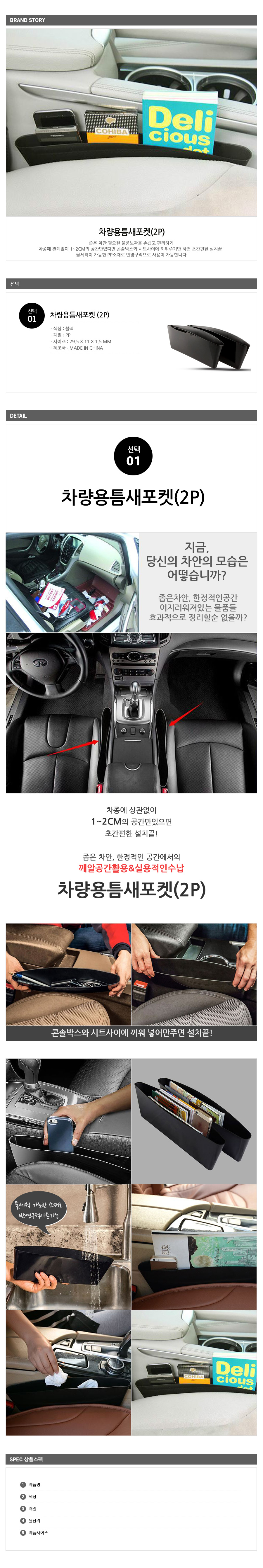 자동차수납정리 자동차휴지통 틈새수납 차량용틈새포켓2P 차량용수납포켓 이미지/