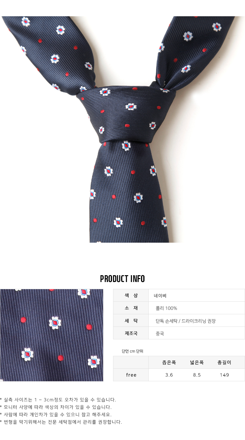 네이비 플라워 패턴 남자 넥타이