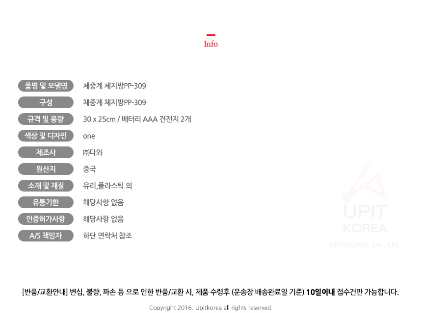 • 반품/환불조건: 도착후 1주일 이내 사용하지 않은 상태에서 가능합니다,초기제품 이상의 경우 동일한 제품으로 1:1 교환원칙, 사용후 제품이상은 A/S를 원칙으로 합니다,