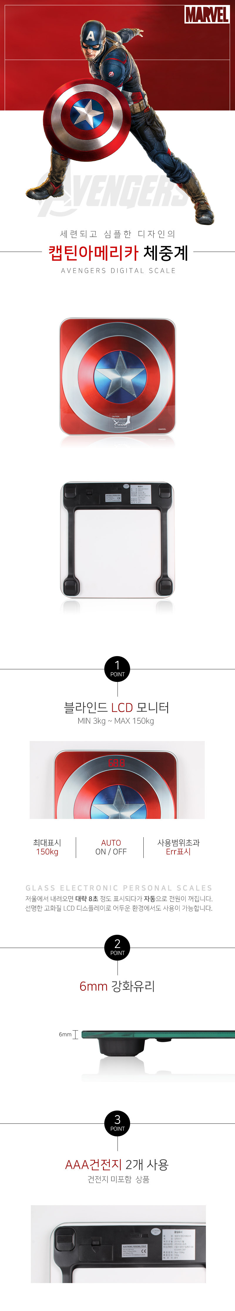 마블 캡틴아메리카 체중계 강화유리 블라인드 LCD모니터 최대150kg