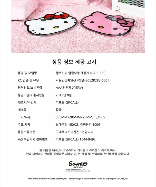 헬로키티 얼굴모양 체중계 이미지/