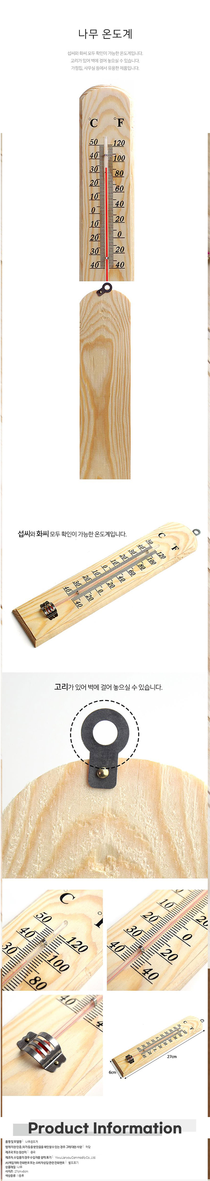 벽걸이용 나무 온도계 학교수업온도계 사무용온도계 이미지/
