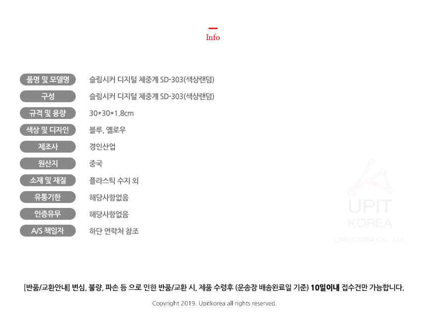 슬림시커 디지털 체중계 SD-303(색상랜덤) 1921 이미지/