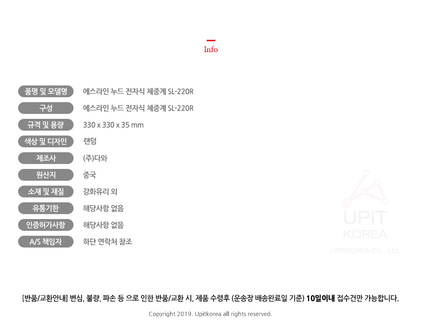• 초기제품 이상의 경우 동일한 제품으로 1:1 교환원칙, 사용후 제품이상은 A/S를 원칙으로 합니다.